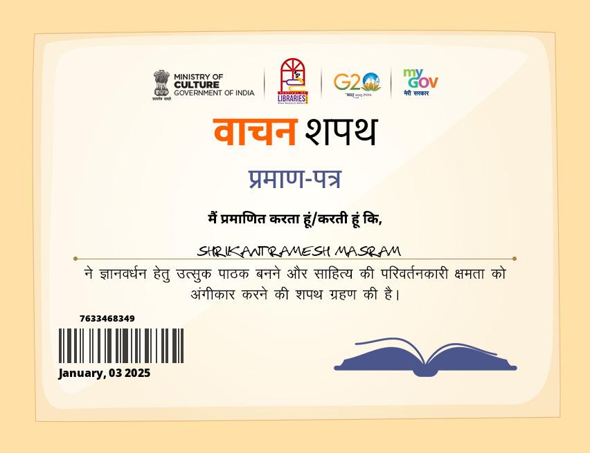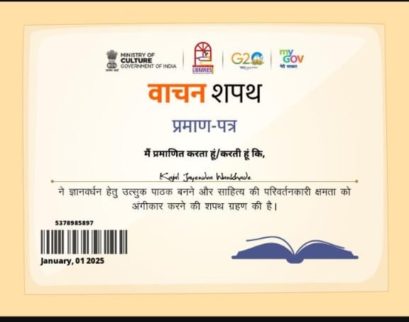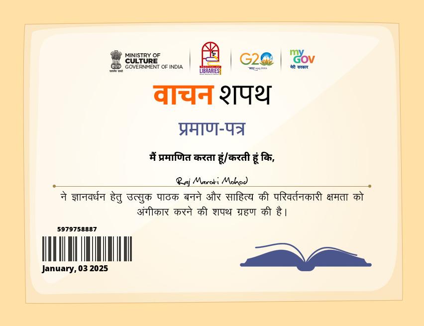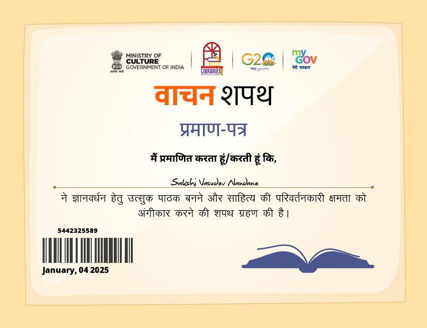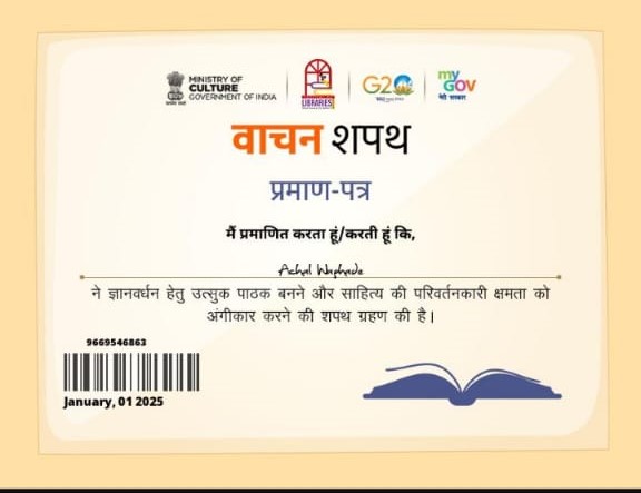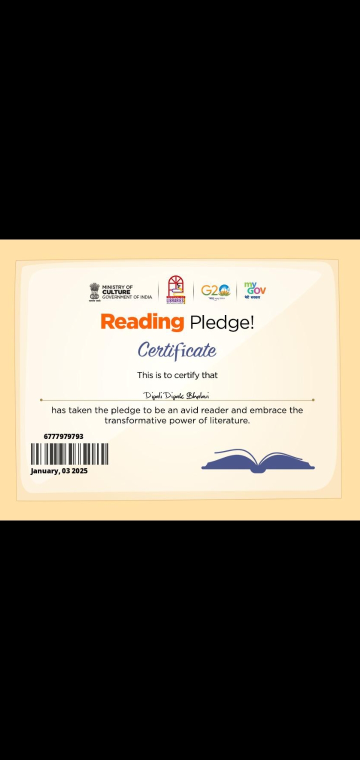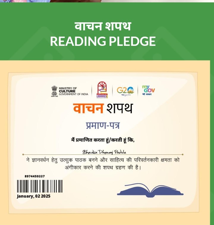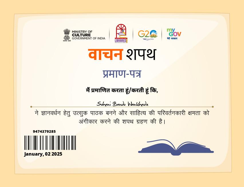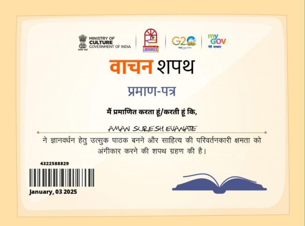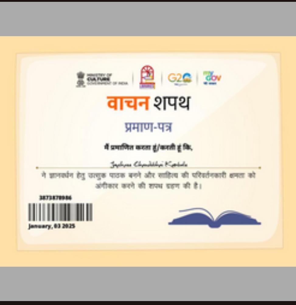 वाचन प्रतिज्ञा प्रमाणपत्र